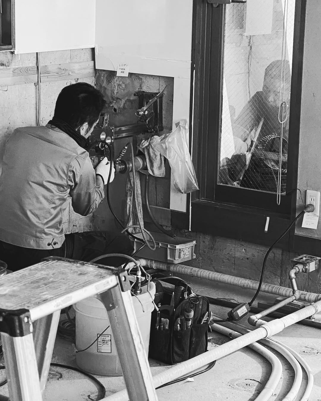 本日よ谷町にてリフォーム工事着工しました。コンクリートレントゲン撮影して穴開けれる所を検査してからコア(穴あけ)しました。コンクリートレントゲンすごい技術ですね(^^) 2023年12月18日(月) 12:00 | カテゴリー:施工事例